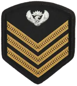 SANDF - INSIGNIA - Rank - NCO - SA Army - Embossed - Gold On Black - Pin On - Sergeant - NCG and MD