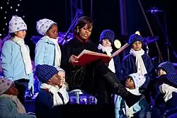Preceding the 5:30 pm tree lighting ceremony was a half-hour concert by the United States Marine Band and the 80-voice Justin Lawrie Choir.[98] Also preceding the event — but not part of the planned performances — was the escape by several sheep from the life-size nativity scene. They ran into the nearby rush-hour traffic (one even entered a local drugstore) until rounded up by Metropolitan Motorcycle Police,[99][97] placing the sheep in their sidecars and shepherding them back safely to their enclosure before the arrival of the presidential party.[100]