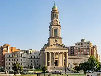 National City Christian Church, located on Thomas Circle in Washington, D.C., is the national church and cathedral of the Christian Church (Disciples of Christ).[2] The denomination grew from the Stone-Campbell Movement founded by Thomas Campbell and Alexander Campbell of Pennsylvania and West Virginia (then Virginia) and Barton W. Stone of Kentucky. National City Christian Church is currently led by The Rev. Stephanie Kendell, the church's first woman called to be their Senior Minister and President.[3]