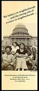 - ^ "National Congress of Neighborhood Women". Agents of Social Change. Smith College. 2010. Retrieved 13 Aug 2011.
