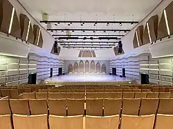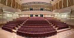 NDHU College of the Arts Concert Hall, also known as the NDHU Performance Hall, is an auditorium with acoustics on par with the National Theater and Concert Hall. It has two levels with a total of 430 seats (381 on the first floor and 49 on the balcony, including 5 accessible seats). A flagship Steinway & Sons Model D-274 concert grand piano is installed on stage, making it the highest-grade performing arts venue in eastern Taiwan.[7][30] There are many world's musician host concert in this venue, including Antonio Hart,[31] Leonard Slatkin,[32] Lü Shao-chia,[33] and Alex Sipiagin.[34]