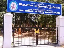 The National Fossil Wood Park, Tiruvakkarai is a notified National Geo-heritage Monument located in the Villupuram District in the Indian state of Tamil Nadu and is maintained by the Geological Survey of India.[1] The park was established in 1940[2] and is located 1 km east of Thiruvakkarai[3][4] village on the road between Tindivanam and Pondicherry.[5]