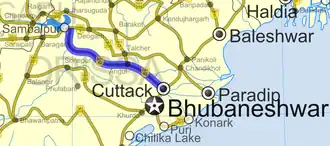 NH-55 connects Maneswar at Sambalpur, Redhakhol, Bamur, Boinda, Badakera, Angul, Dhenkanal, and terminates at Manguli near Cuttack in the state of Odisha.[2]