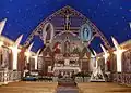 Most National Historic Sites are marked by a federal plaque bearing Canada's Coat of Arms.[43] In earlier years, these plaques were erected on purpose-built cairns,[9] and in later years have been attached to buildings or free-standing posts. These maroon and gold markers are typically in English and French, though some are trilingual where another language is relevant to the subject being commemorated.[44]
