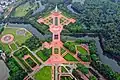 The architecture consists of seven pairs of triangular-shaped walls or prisms, the outermost pair being the shortest while also being the widest in span; the inner pairs gradually change their aspect ratio and the innermost pair thus forms the peak point of the architecture.[4] Each of these seven pairs of walls represents a significant chapter in the history of Bangladesh, namely the 1952 Bengali language movement, the 1954 provincial election victory of the United Front, the 1956 Constitution Movement, the 1962 East Pakistan Education movement, the 1966 six point movement, the 1969 mass uprising, and the climactic event of the 1971 Liberation War (through which Bangladesh became an independent sovereign state).[3] The architecture and landscaping are designed to evoke the resilience and struggle of the Bangladeshi people during the war.