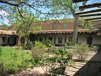 The National Park Service Southwest Regional Office, also known as National Park Service Region III Headquarters Building, is located at 1100 Old Santa Fe Trail in Santa Fe, New Mexico. The office provides support services for Park Service properties throughout the intermountain region of the American Southwest. The building, designed by NPS architect Cecil J. Doty, it is a traditional adobe building, built the 1930s by crews of the Civilian Conservation Corps. It is the largest adobe office building in the nation, and a masterpiece of Spanish Pueblo Revival architecture. It was designated a National Historic Landmark in 1987.[2][3][4] It is open to the public during normal business hours; tours are not normally given.