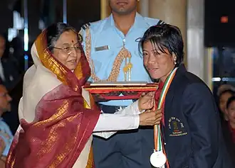 ![]() Mary Kom receives the 2009 Major Dhyan Chand Khel Ratna for Boxing | |