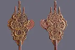 The Minister of Culture, Sports and Tourism specified the order of and procedures for recognising a national treasure, then the decision of granting the title national treasure comes from the Prime Minister of Vietnam with the consultation of National Council for Cultural Heritages.[3] The first set of national treasure is officially designated in October 2012.[4] Up until 2024, 12 sets of national treasures (294 artifacts) had been designated in a series of decrees signed by the Deputy Prime Minister of Vietnam on behalf of Prime Minister. The different combination of treasures into sets only depends on the chronological order of nominations submitted by owners of the treasures, not related to the category or value of the treasures themselves.[5][6] The quantities and designation dates of Vietnamese national treasures are:
