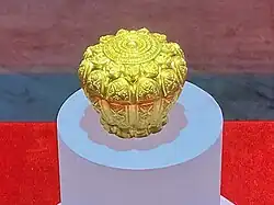 A National Treasure (Vietnamese: Bảo vật quốc gia) or a national precious object[1] is a tangible cultural heritage or object handed down from the past with historical, cultural or scientific value of exceptional significance to the country of Vietnam.[2] National treasures are deemed to be protected and preserved according to a special scheme by the Vietnamese Government. The government also earmark an adequate proportion of the State budget to purchase national treasure as well as investment in activities of protecting and promoting the values of these objects. The title national treasure is recognised by a decision from the Vietnamese Prime Minister after obtaining evaluation opinions of the National Council for Cultural Heritages.[3]