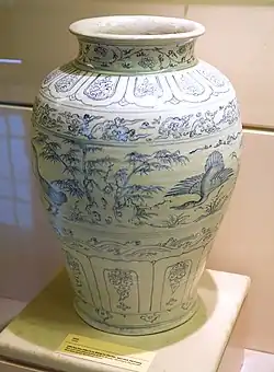 8 | Blue and white ceramic vase with swan patterns | 15th century (Lê dynasty) |