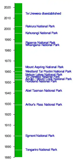 - ^ "DOC delays review of national parks after talks with iwi". RNZ. 4 February 2019. Retrieved 24 March 2024.