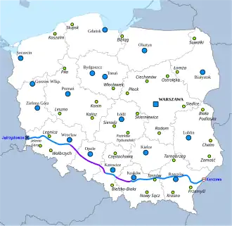 Major cities | Legnica, Wrocław, Opole, Gliwice, Katowice, Kraków, Tarnów, Rzeszów | |||