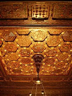 The Nationality Rooms are a group of 31 classrooms in the University of Pittsburgh's Cathedral of Learning depicting and donated by the national and ethnic groups that helped build the city of Pittsburgh. The rooms are designated as a Pittsburgh History and Landmarks Foundation historical landmark and are located on the 1st and 3rd floors of the Cathedral of Learning, itself a national historic landmark,[4][5] on the University of Pittsburgh's main campus in the Oakland neighborhood of Pittsburgh, Pennsylvania, United States. Although of museum caliber, 29 of the 31 rooms are used as daily classrooms by University of Pittsburgh faculty and students, while the other two (the Early American and Syrian-Lebanon) are display rooms viewed through glass doors, utilized primarily for special events, and can only be explored via special guided tour. The Nationality Rooms also serve in a vigorous program of intercultural involvement and exchange in which the original organizing committees for the rooms remain as participants and which includes a program of annual student scholarship to facilitate study abroad.[6] In addition, the Nationality Rooms inspire lectures, seminars, concerts exhibitions, and social events which focus on the various heritages and traditions of the nations represented. The national, traditional, and religious holidays of the nations represented are celebrated on campus and the rooms are appropriately decorated to reflect these occasions. The Nationality Rooms are available daily for public tours as long as the particular room is not being used for a class or other university function.[7]