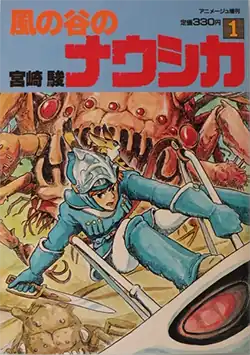 The manga was serialized in Tokuma Shoten's monthly Animage magazine between 1982 and 1994.[35] The series initially ran from the February 1982 issue to the November 1982 issue when the first interruption occurred due to Miyazaki's work related trip to Europe.[36] Serialization resumed in the December issue and the series ran again until June 1983 when it went on hiatus once more due to Miyazaki's work on the film adaptation of the series. Serialization of the manga resumed for the third time from the August 1984 issue but halted again in the May 1985 issue when Miyazaki placed the series on hiatus to work on Castle in the Sky. Serialization resumed for the fourth time in the December 1986 issue and was halted again in June 1987 when Miyazaki placed the series on hiatus to work on the films My Neighbor Totoro and Kiki's Delivery Service. The series resumed for the fifth time in the April 1990 issue and was halted in the May 1991 issue when Miyazaki worked on Porco Rosso. The series resumed for the final time in the March 1993 issue. The final panel is dated January 28, 1994. The last chapter was released in the March 1994 issue of Animage. By the end, Miyazaki had created 59 chapters, of varying length, for publication in the magazine. In an interview, conducted shortly after serialization of the manga had ended, he noted that this amounts to approximately 5 years worth of material. He stated that he did not plan for the manga to run that long and that he wrote the story based on the idea that it could be stopped at any moment.[37][38]