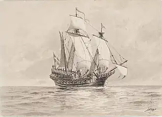 In November, Norby made another attempt to send supplies into Stockholm. Using 9 archipelago ships and 30 transport vessels[3][2] with provisions and other necessities, he sailed into Stockholm's Archipelago. He was soon met by a fleet of 18 ships, 10 Swedish and 8 Lübeckian, the Swedish ships under the command of Erik Fleming and Staffan Sasse, while the Lübeckian ones were under the command of Friedrich Bruun.[3] After a bloody fight, he was eventually forced to withdraw from the archipelago, abandoning the 30 transport ships to the Swedish–Lübeckian fleet.[2][3] It is likely that he would have suffered an even worse defeat had the Lübeckian ships not been passive. Instead of attacking him with the Swedes, they dropped their anchors and allowed him to retreat.[1][3]