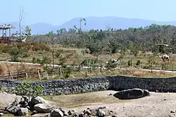 The Naypyidaw Safari Park (Burmese: နေပြည်တော် ဆာဖာရီ ဥယျာဉ်) is a wildlife park, located in Naypyidaw, Myanmar (Burma). The park consists of an 35.1 acres (14.2 ha) Asian safari, a 3.53 acres (1.43 ha) Australian safari and a 59.64 acres (24.14 ha) African safari. The Asian safari has over 100 rare wildlife animals including the domesticated wild oxen, sambur, and different kinds of deer. At the same time, the Australian one features various types of leopards and the African one various African deer, camels, goats, lions, tigers, rhinos, ostriches, giraffes, zebras and ponies. Visitors can see the wildlife by buggy.[1]