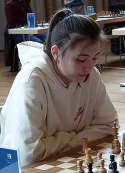 - In 2022, at reserve board in the 44th Chess Olympiad (women) in Chennai (+1, =1, -2).[12]