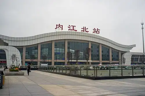 Neijiang North railway station opened on 26 December 2015.[1] In its first year of operation there were 2.21 million passengers.[2]