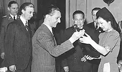She also continued to tour in Germany, but was finally forced to flee Paris in August 1944 when the Allies closed in on the city. She joined Japanese Ambassador Ōshima's entourage in the Japanese Embassy in Berlin in April 1945 before moving with them to Bad Gastein when the war in Europe ended in May.[3] She was captured in the Austrian Alps with the entire Japanese diplomatic mission to Germany by the Seventh United States Army in May 1945. She and other Japanese nationals were placed on board the liner Santa Rosa, in Le Havre, France, bound for New York. They were briefly sent to Pennsylvania in August to be detained in the Bedford Springs Hotel in the heart of the Allegheny Mountains before being released in November and sent back to Japan.[2]