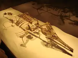 Choristoderes reappear in the fossil record in the Campanian of North America under the genus Champsosaurus. This genus survives the KT event unscathed and diversifies in the aftermath, being soon after joined by Simoedosaurus. Both taxa remain at high latitudes in North America and Europe until the Eocene, when they mysteriously disappear.[3]