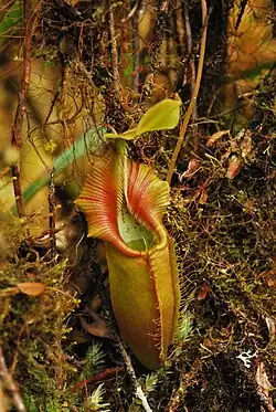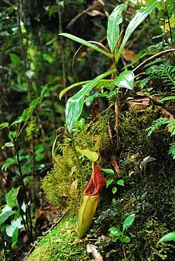 In addition, Bruce Salmon and Ricky Maulder found N. mikei × N. ovata and N. gymnamphora × N. ovata on Mount Pangulubao.[8][15] Some authors consider N. xiphioides to be distinct from N. gymnamphora and so this hybrid is sometimes listed as N. ovata × N. xiphioides.[15]