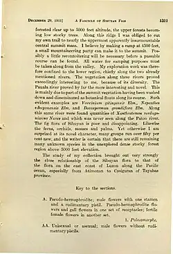 The first use of the name N. sibuyanensis greatly predates the formal description of this species. A certain "Nepenthes sibuyanensis Elm." appears in the December 29, 1911 issue of Leaflets of Philippine Botany, in an article by Adolph Daniel Edward Elmer on the figs of Sibuyan.[3] Elmer wrote that this Nepenthes formed part of the summit vegetation of Mount Guiting-Guiting, which was "washed down and disseminated as botanical floats" along the Pauala River, where he observed it.[3]