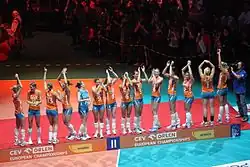 The Netherlands women's national volleyball team is the national volleyball team of the Netherlands. It is governed by the Nederlandse Volleybalbond (NeVoBo). Following the 1995 European Championship they hosted in Arnhem and finishing fifth at the 1996 Olympics, the Dutch have had moments of success amidst instability, such as the title of the 2007 FIVB World Grand Prix,[1] and a return to the Olympic Games in 2016, where the Netherlands got to fourth place.[2]