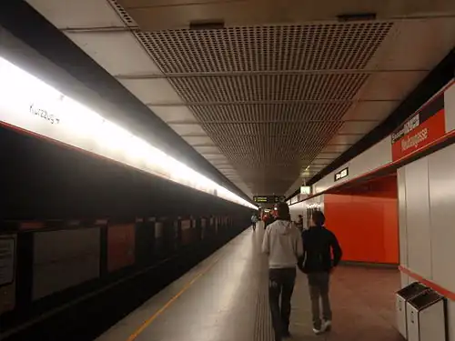 Neubaugasse is a station on U3 of the Vienna U-Bahn.[1] It is located in the Neubau District. It opened in 1993. In this station, the two platforms are not on the same level: the platform for trains bound for Simmering is above, and the platform for trains bound for Ottakring is below.