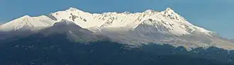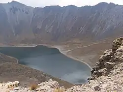 The Nevado de Toluca National Park is located southwest of the city of Toluca, Mexico State. It was decreed a park in 1936, primarily to protect the Nevado de Toluca volcano, which forms nearly the park's entire surface and is the fourth highest peak in Mexico. It is 45 km from Toluca and 135 from Mexico City.[1] The park was established with the aim of conservation, but the park is under increasing pressure from the growth of the Toluca metropolitan area as well as from illegal logging done by local communities who need the income.[2] The volcano has been long extinct and has a large crater in which are two shallow lakes. The crater and lakes are popular with visitors from Mexico State and Mexico City, especially when there is snow.[3] There are a number of archeological sites in the park, including the lakes themselves, which contain numerous offerings of copal and other items that were deposited during the pre-Hispanic period.[4] The park offers activities such as hiking, mountain biking and horseback riding as well as limited skiing facilities. Due to its altitude, the summit of the Nevado is significantly colder than the surrounding area.[5]