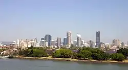 View across the Brisbane River to New Farm Park with the Brisbane CBD skyline in the background, 2006