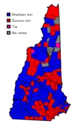 ![]() ![]() Shaheen: 40–50% 50–60% 60–70% 70–80% >90% Sununu: 40–50% 50–60% 60–70% 70–80% Tie: 40–50% | |||||||||||||||||