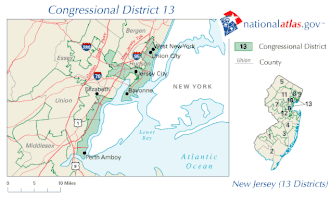 - ^ New Jersey's 13th Congressional District: P4. Hispanic or Latino, and not Hispanic or Latino by Race, United States Census, 2000, accessed September 5, 2006