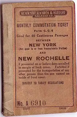 New Rochelle station is a Metro-North Railroad and Amtrak train station located in New Rochelle, New York. The station serves Metro-North's New Haven Line and Amtrak's Northeast Regional; Bee-Line Bus System buses serve a bus stop just outside the station. As of August 2006, weekday commuter ridership was 4,020, and there are 1,381 parking spots.[6] It is the busiest New Haven Line station in Westchester County.