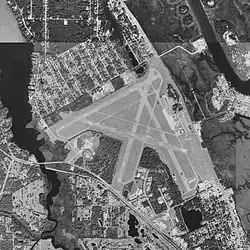 As a Navy airfield, the facility originally incorporated four intersecting asphalt runways. Although all paved areas remain, only three of the runways remain operational today.[5] Prior to 2004, the airport was an uncontrolled facility. In October 2004, a Level I contract control at the airport became operational, changing the airport's status to that of a controlled field. Today the airport serves the needs of charter airlines and general aviation activities, to include flight training and corporate air travel.