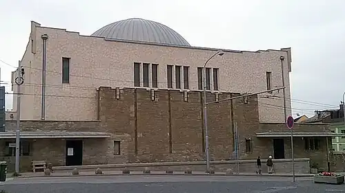 Completed in 1931 to the designs of the German Modernist architect Peter Behrens, it was completed eight years before World War II, which almost obliterated the Jewish population of Slovakia,[a] and it has been called "the last Slovak synagogue".[3]: 199 Having been used for other purposes after World War II, it was restored between 2011 and 2017 to become an arts center.
