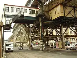 About 40% of the subway system runs on surface or elevated tracks, including steel or cast-iron elevated structures, concrete viaducts, embankments, open cuts and surface routes.[81] As of 2019, there are 168 miles (270 km) of elevated tracks.[82] All of these construction methods are completely grade-separated from road and pedestrian crossings, and most crossings of two subway tracks are grade-separated with flying junctions. The sole exceptions of at-grade junctions of two lines in regular service are the 142nd Street[83] and Myrtle Avenue junctions, whose tracks intersect at the same level, as well as the same-direction pairs of tracks on the IRT Eastern Parkway Line at Rogers Junction.[84][85]