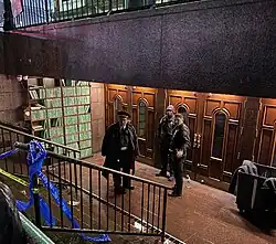 On the afternoon of January 8, 2024, a group of yeshiva students, reported to be Chabad messianics, attempted to protect the hidden passageways after a cement truck arrived to fill the tunnel.[4] The men were seen tearing up wood paneling and throwing wooden pews while others ran into the tunnel to stop it from being filled.[13] The New York City Police Department responded after receiving reports of a "disorderly group" outside the building.[14]
