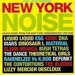 New York Noise is a 2003 compilation album released by Soul Jazz Records. The music of the album compiles features the genre-bending music from New York City released during the late '70s and early '80s, ranging from no wave to mutant disco to hip-hop to art funk among others.[1] On its release, it received positive reviews from AllMusic, Pitchfork Media and Rolling Stone. A new version of the album with several track re-arrangements was released in 2016.
