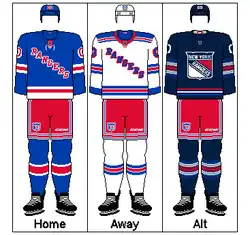 - ^ a b c "New York Rangers uniform history". The (unofficial) NHL Uniform Database. Archived from the original on June 25, 2014. Retrieved May 10, 2014.