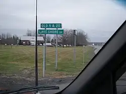 In the 1930 state highway renumbering, NY 5 was truncated even further to begin in downtown Buffalo. The portion between Buffalo and Athol Springs was assigned as part of NY 62.[27] Southwest of Buffalo, Southwestern Boulevard, an alternate route of US 20 between Irving and Big Tree (east of Athol Springs) became NY 20B.[28] Further southwest, another alternate route of US 20 between the Pennsylvania line and Silver Creek, running along the shore of Lake Erie, was designated as NY 20A.[27] The NY 20A and NY 20B designations proved to be short-lived. US 62 was extended into New York c. 1932, causing NY 62 to be renumbered. Around the same time, US 20 was realigned to follow NY 20B from Irving to Big Tree. NY 5 was extended along part of old NY 62 to Athol Springs, from where it continued to the Pennsylvania state line by way of US 20's old routing to Irving and all of NY 20A.[29][30]