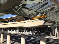Designed by Grimshaw Architects, Terminal A references the modern era design of the "modular concrete structures" of the other two terminals through the use of the latest materials that allow for a larger and more light-filled space.[112][113] The redevelopment offers more traffic lanes at pickup and drop-off points, closer check-in counters and security areas to the entrance, and more gate flexibility to allow planes to park at any gate in a "common-use" system.[107][67] The new Terminal A has four levels: the departures level, the mezzanine level for offices, the arrivals level, and the ground floor, where baggage claim is located.[67] The terminal is operated as EWR Terminal One LLC by Munich Airport International, a subsidiary of Munich Airport, which manages the terminal's operations, maintenance, and concessions in the 1 million square feet of retail space.[114] The redevelopment also comes with plans to replace the existing AirTrain monorail system, scheduled to open in 2029, and was not opened along with the new Terminal A.[67]