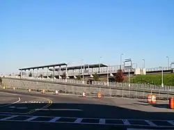 By April 2012, the station was 49% complete; the platforms were in place but no ramps or canopies had been constructed.[8] By September, canopies were in place and the ramps were under construction. After substantial work during the summer, the station was 70% complete by mid-September.[14] Completion reached 85% by April 2013. Newmarket was substantially completed for its opening on July 1, 2013, with all construction to be finished by August 2013.[15][2] Ribbon-cutting ceremonies were held at Newmarket, Four Corners/Geneva, and Talbot Avenue on July 17, 2013.[16]