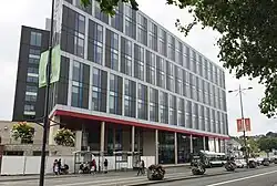 On Upper Dock Street is the Chartist Tower, a 15-storey office block, built in 1966 and the tallest building in Newport. It features a secure underground car park. Radio transmitters and mobile phone masts are situated on the roof. During the 2014 NATO summit a security forces command and control team was housed temporarily in the building, with the top floor and roof being used as an observation post.[1] In 2017 the building was sold as party of a £6.5M deal and has now been developed into a 163-bed Mercure hotel.[2][3]