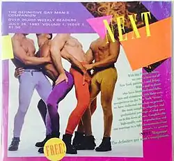 Next Magazine is a weekly gay lifestyle magazine that was published in New York City from July 1993 to September 2016. It addressed topics of fashion, life, entertainment, sex, and LGBT culture news, and was distributed freely in gay bars and other locations throughout Manhattan, Brooklyn, Queens, The Bronx, Long Island, and New Jersey.