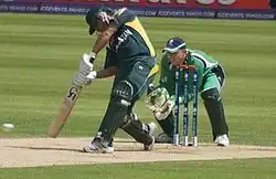 O'Brien set a World Twenty20 record with his 4 dismissals against Sri Lanka in the Super 8 stage of the 2009 ICC World Twenty20. O'Brien was selected in Ireland's 15-man squad for the 2011 World Cup to be hosted by Bangladesh, India, and Sri Lanka between February and April.[21] During the tournament he became the third player to score 1,000 ODI runs for Ireland after William Porterfield and his brother Kevin.[22] He passed this landmark in Ireland's five-wicket defeat to India. In the same match, O'Brien and Porterfield established a new records for Ireland's third wicket in ODI, putting on 113 runs together.[23] Ireland were due to play two ODIs against Pakistan in May, however O'Brien suffered an injury to his hand and was forced to miss the fixtures.[24]