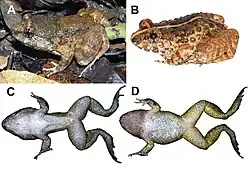 - ^ Phimmachak, Somphouthone; Richards, Stephen J.; Sivongxay, Niane; Seateun, Sengvilay; Chuaynkern, Yodchaiy; Makchai, Sunchai; Som, Hannah E.; Stuart, Bryan L. (2019-05-16). "A new caruncle-bearing fanged frog (Limnonectes, Dicroglossidae) from Laos and Thailand". ZooKeys (846): 133–156. Bibcode:2019ZooK..846..133P. doi:10.3897/zookeys.846.33200. ISSN 1313-2970. PMC 6533239. PMID 31148931.