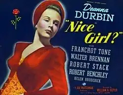 Nice Girl? is a 1941 American musical comedy film directed by William A. Seiter and starring Deanna Durbin, Franchot Tone, Walter Brennan, Robert Stack,[2][3] and Robert Benchley. Based on the play Nice Girl? by Phyllis Duganne, the film is about a young girl who finds herself attracted to one of her father's business partners who comes to town to give her father a scholarship for his dietary studies.[2][4]