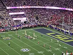 Manning Field at John L. Guidry Stadium is a 10,500-seat multi-purpose stadium in Thibodaux, Louisiana.[8] It is home to the Nicholls Colonels football team of the Southland Conference in the Football Championship Subdivision (FCS). The stadium is named in honor of former state representative John L. Guidry who was instrumental in the establishment of Francis T. Nicholls Junior College. The playing surface is named Manning Field after the Manning family (Peyton, Eli, Cooper and Archie) because the family holds the annual Manning Passing Academy football camp at the facility.[9] The current playing surface is GeoGreen Replicated Grass.[10] The stadium was officially dedicated on September 16, 1972.