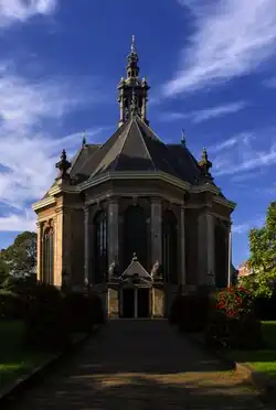 The Nieuwe Kerk, or new church (first half 17th century), contains the tombs of the brothers De Witt and of the philosopher Spinoza.[2] Spinoza's tomb is in the churchyard.