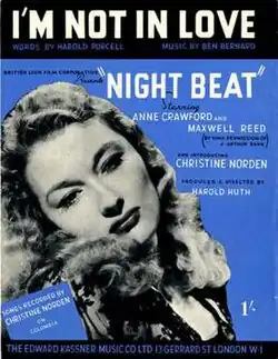 Night Beat is a 1947 British Brit noir crime thriller drama film directed by Harold Huth and starring Anne Crawford, Maxwell Reed, Ronald Howard, Hector Ross, Christine Norden and Sid James.[3] It was written by Guy Morgan and T. J. Morrison.